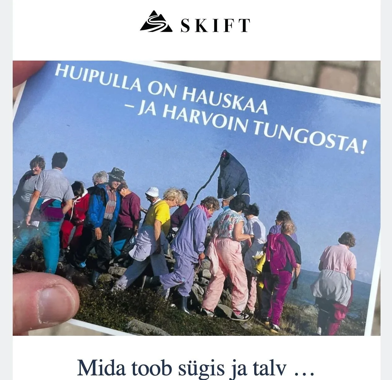 SKIFTI valikust leiad plaanilisi matku, laagreid, koolitusi. Võimalus on tellida ka matk-seiklus-koolitus omas lemmik piirkonnas omale grupile.